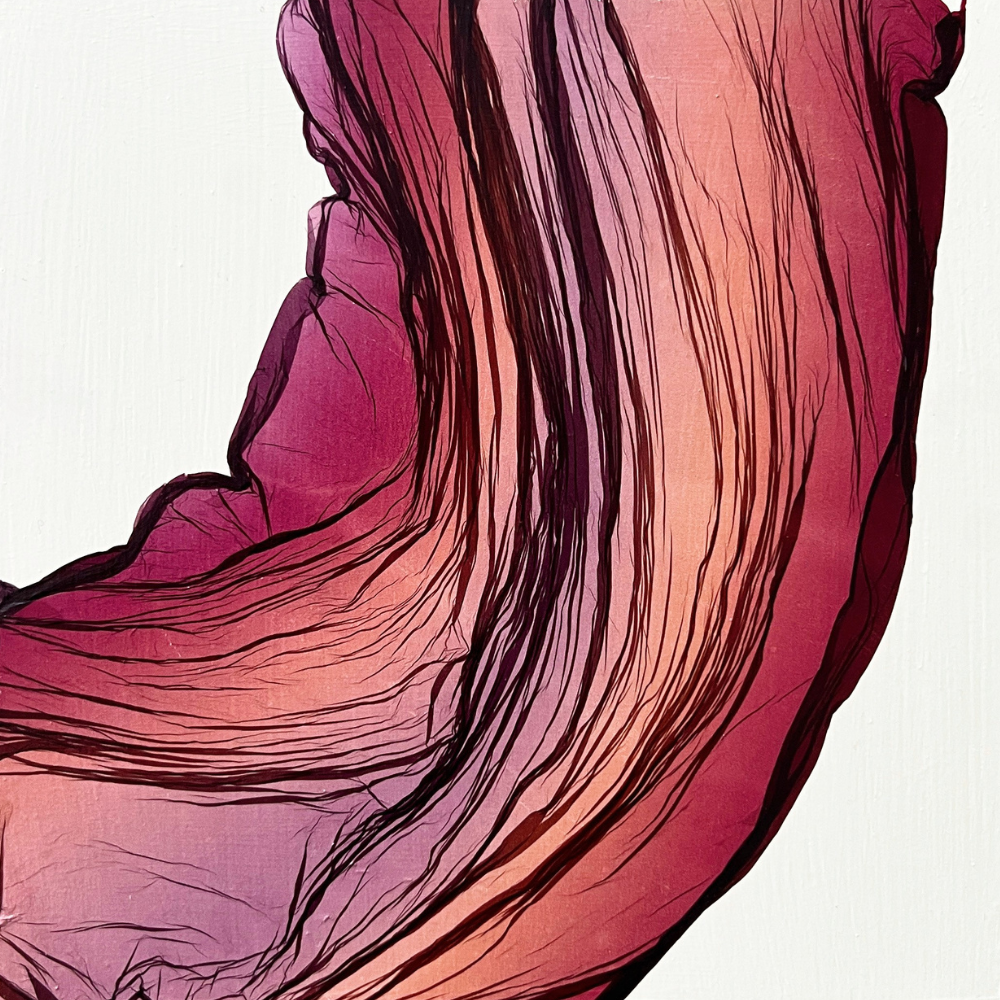 As an artist and a biologist, Mol is driven to create by a never-ending curiosity about the natural world. They approach making with a tenderness, making decisions about color and texture, light and pattern. With such a rich world of observation, it is clear how Mol delights in the act of seeing. Common subjects include anatomy, cells, and aquatic organisms, often drawing from photos taken during trips to the aquarium.