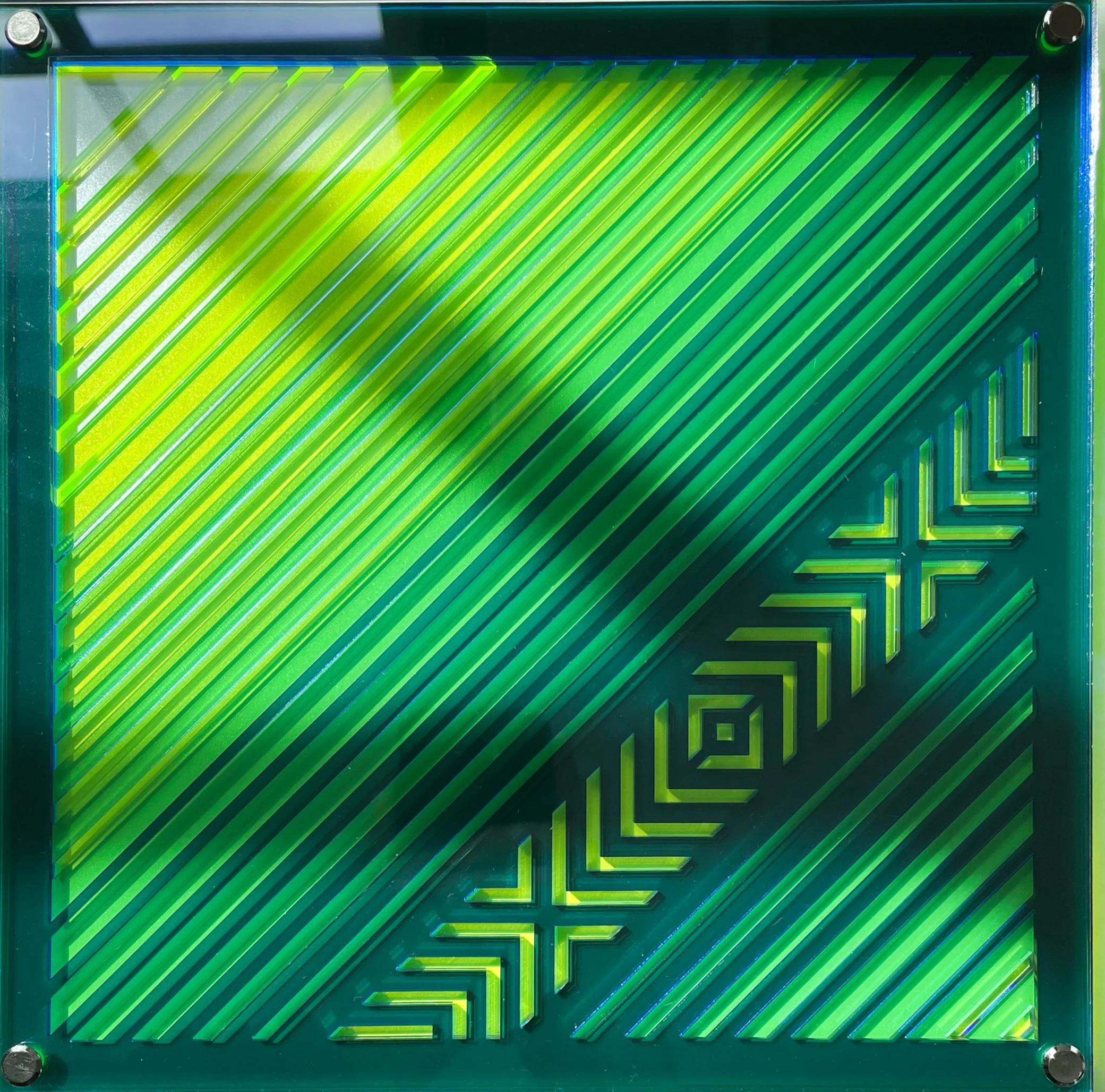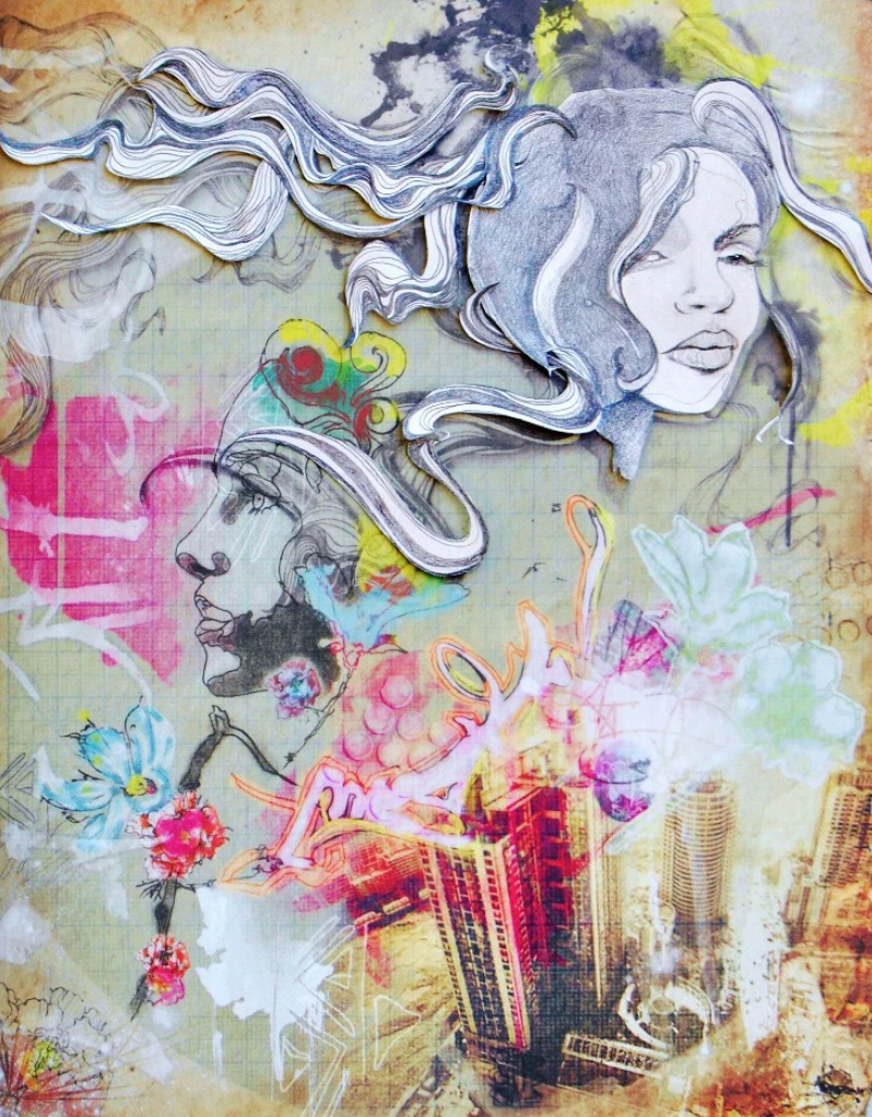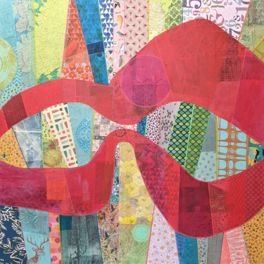 Color, form, pattern, and texture are the primary guiding elements for Hollie. She tells stories through the macro and micro imagery and messaging incorporated in her art. Blakeney creates pieces that evoke both a sense of curiosity and contemplation, inviting the viewer to engage in with a sense of meandering exploration and reflection. Her approach is spontaneous; working the surface while creating an interplay of images and pattern that results in a complex and nuanced surface for viewers to engage with.