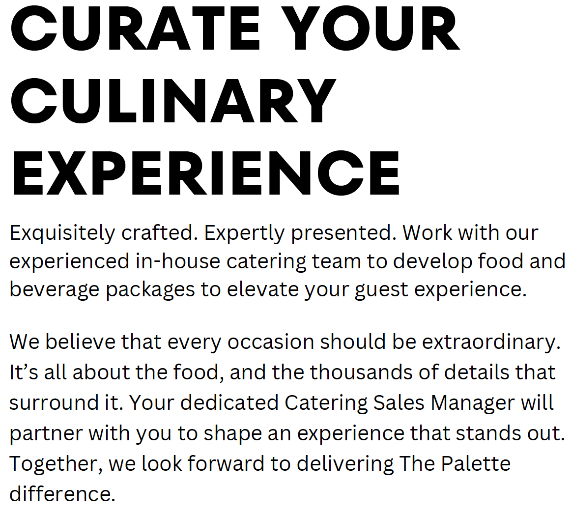 See our Palette Catering menu for pre-set options that have been crafted by our culinary team. Proven to delight guest and streamline the event planning process.